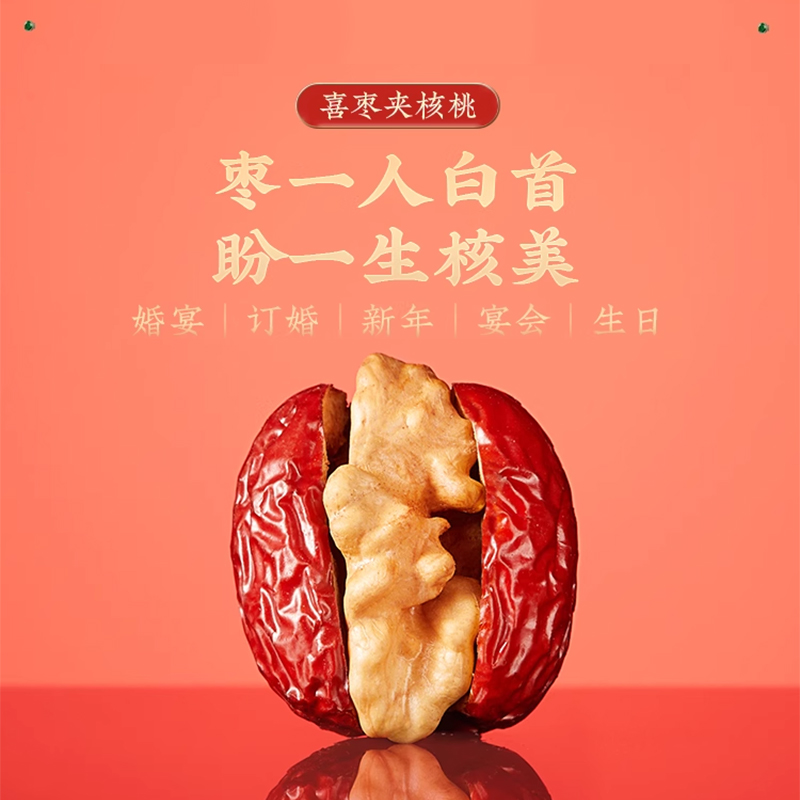 【百补】好想你报喜枣夹核桃一级灰枣散装结婚满月礼枣生贵子喜糖