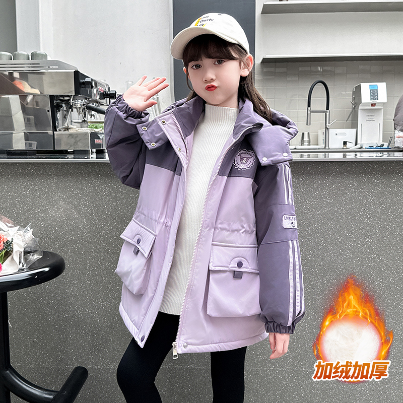 女童外套秋冬季2025新款小女孩加绒加厚冲锋衣初中生冬季派克棉服
