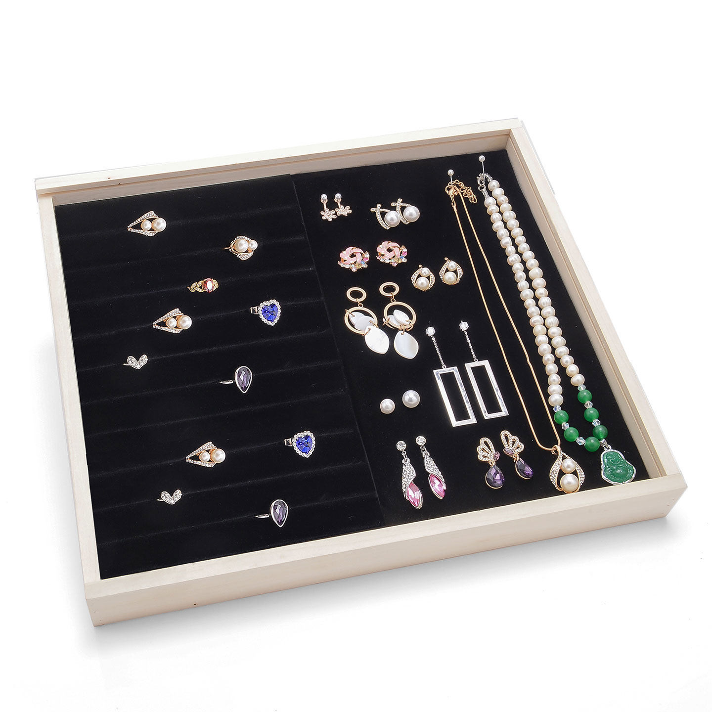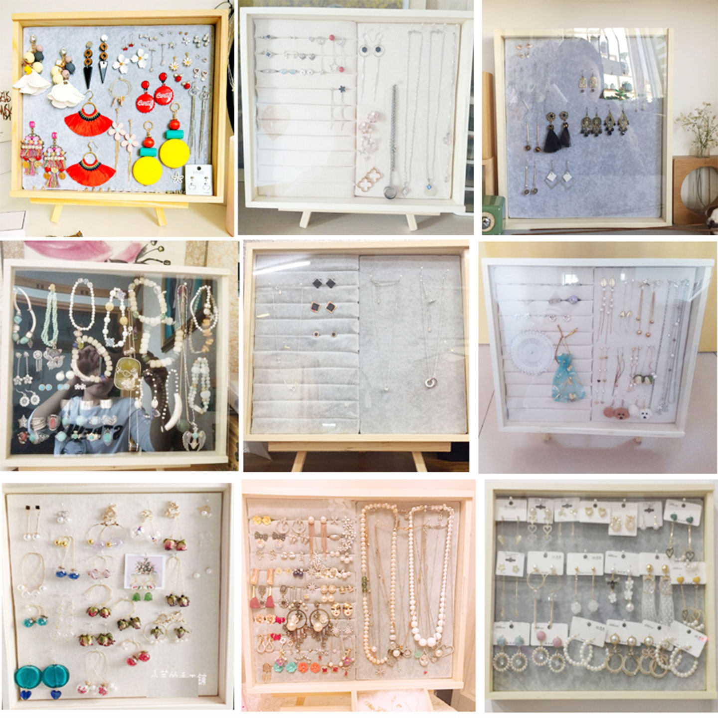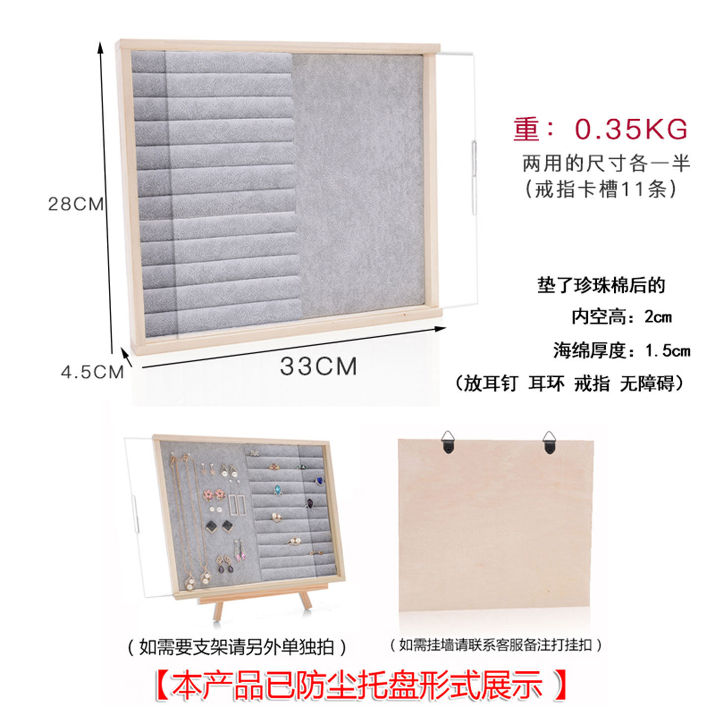 实木防尘首饰盒耳钉戒指收纳托盘家用耳环项链架子绒布展示架珠宝