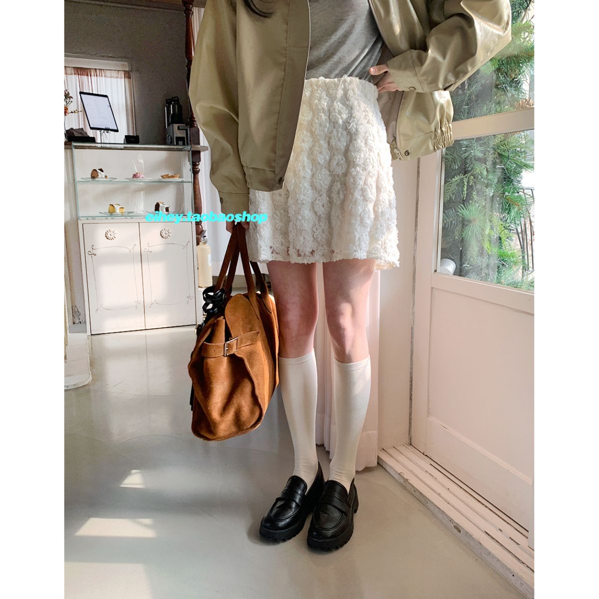 eihey诶嘿甜美蕾丝立体花朵短裙