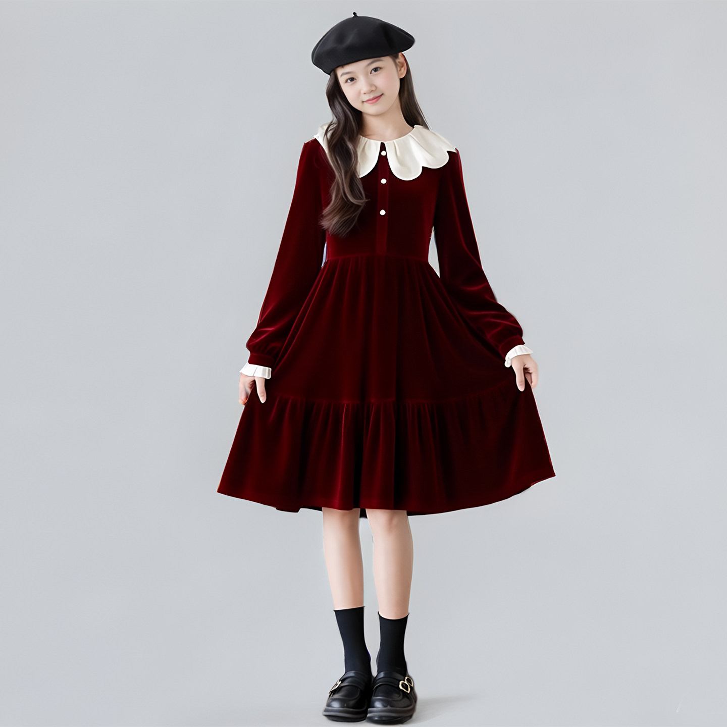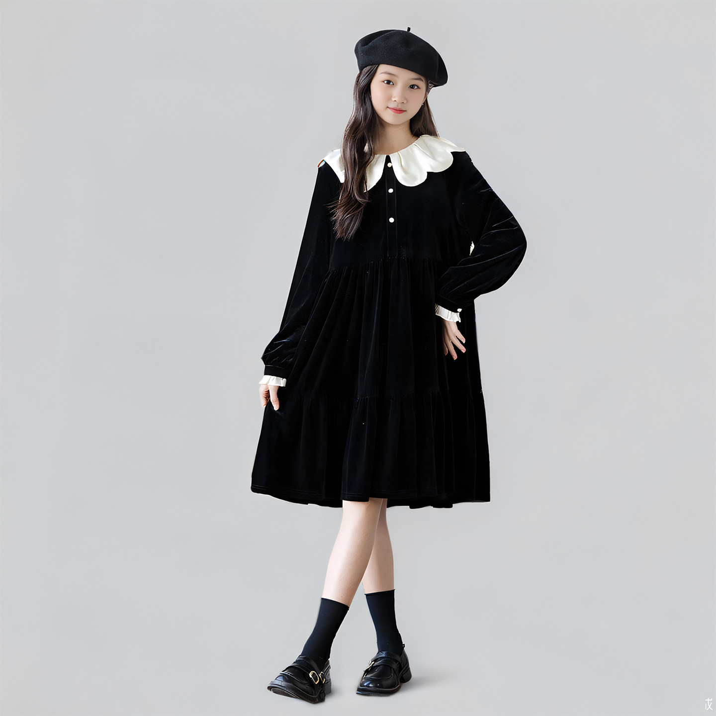 韩版女童洋气宽松丝绒连衣裙秋冬季新款中大童加绒生日礼服公主裙