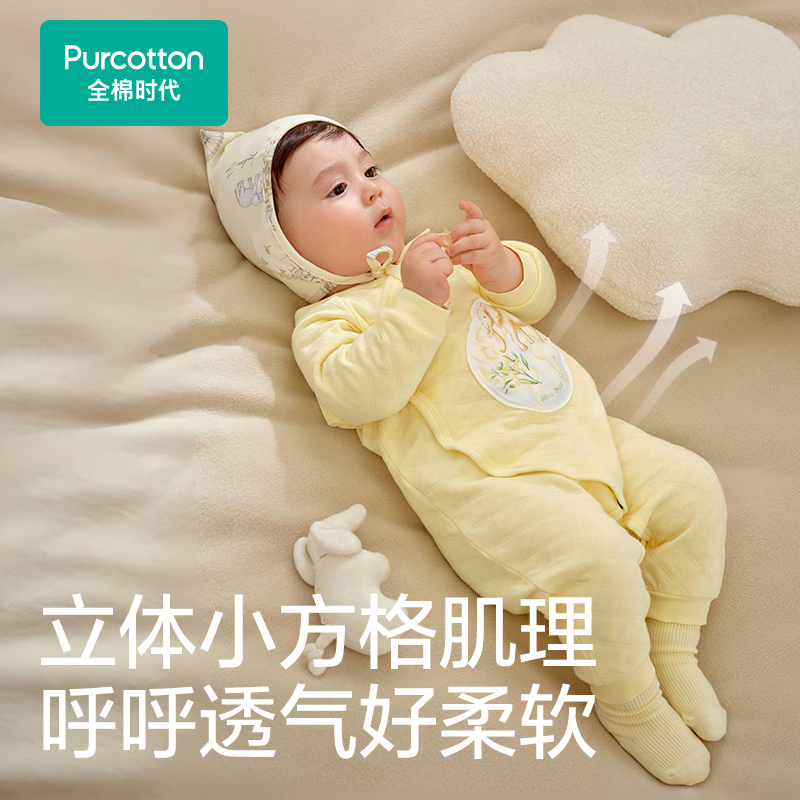 全棉时代婴儿连身衣新生儿宝宝婴幼儿纱布纯棉冬季加厚连体服保暖