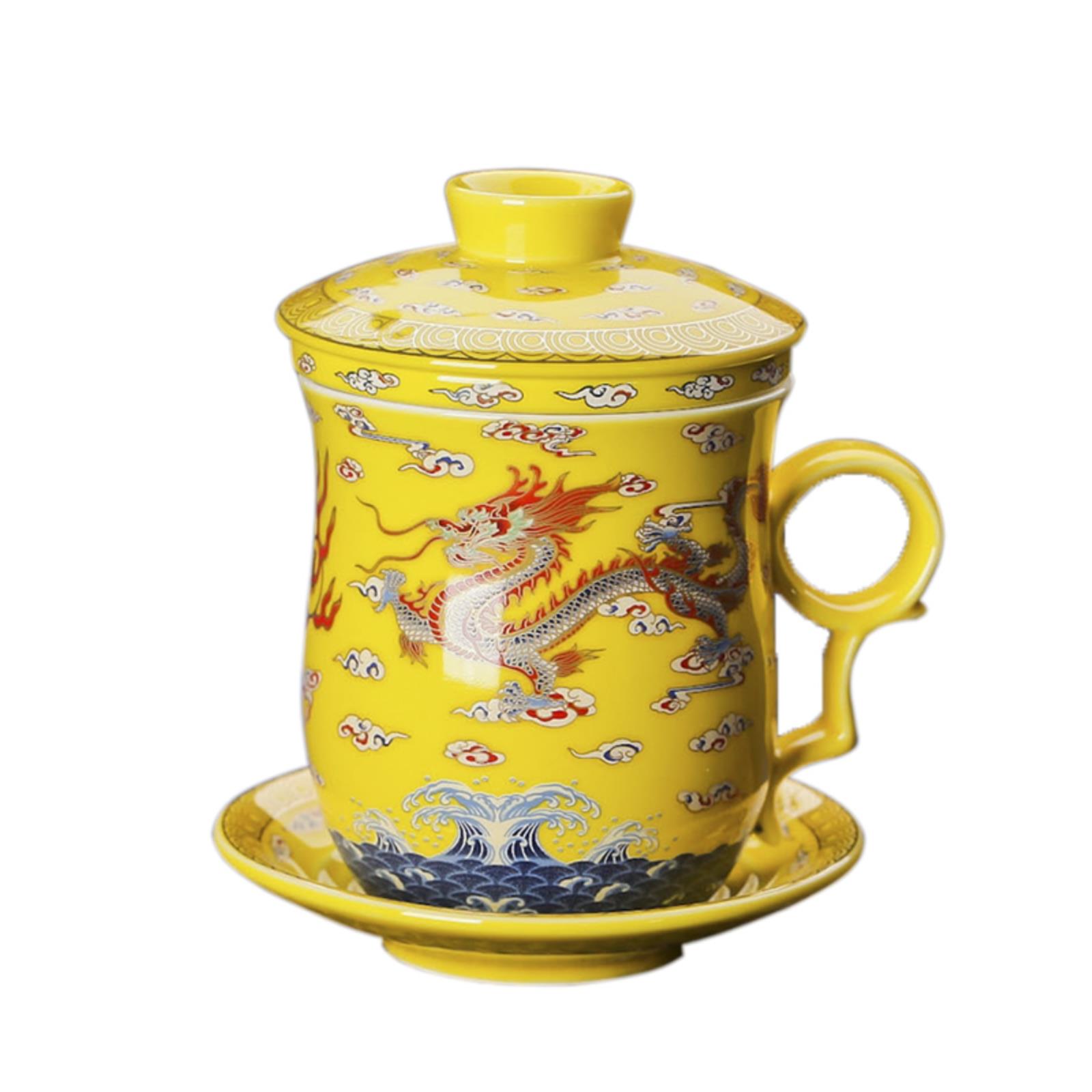 景德镇陶瓷四件杯带盖过滤泡茶杯 子茶具套装办公室个人会议水杯