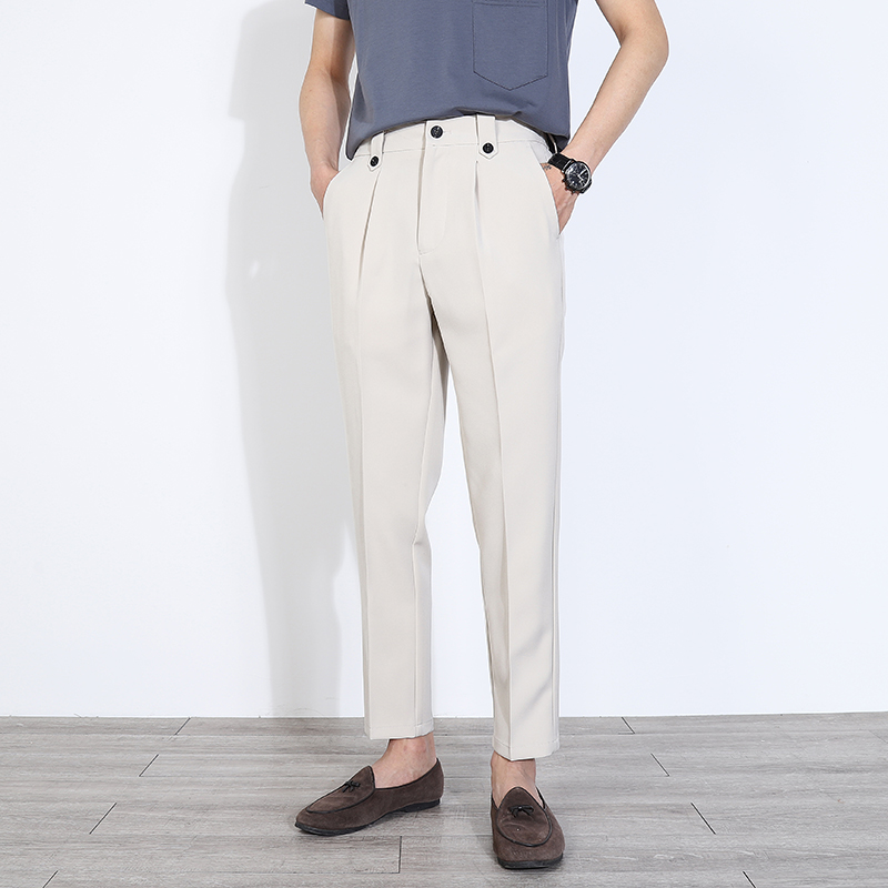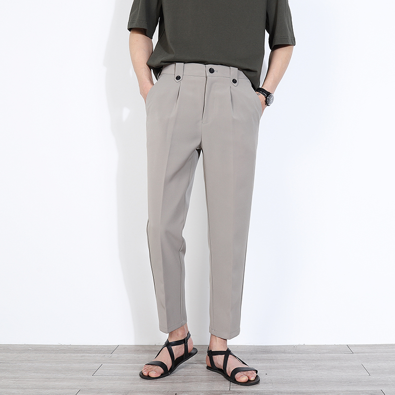 春夏免烫冰丝西裤男2023新款韩版纯色宽松小脚休闲裤子男装九分裤