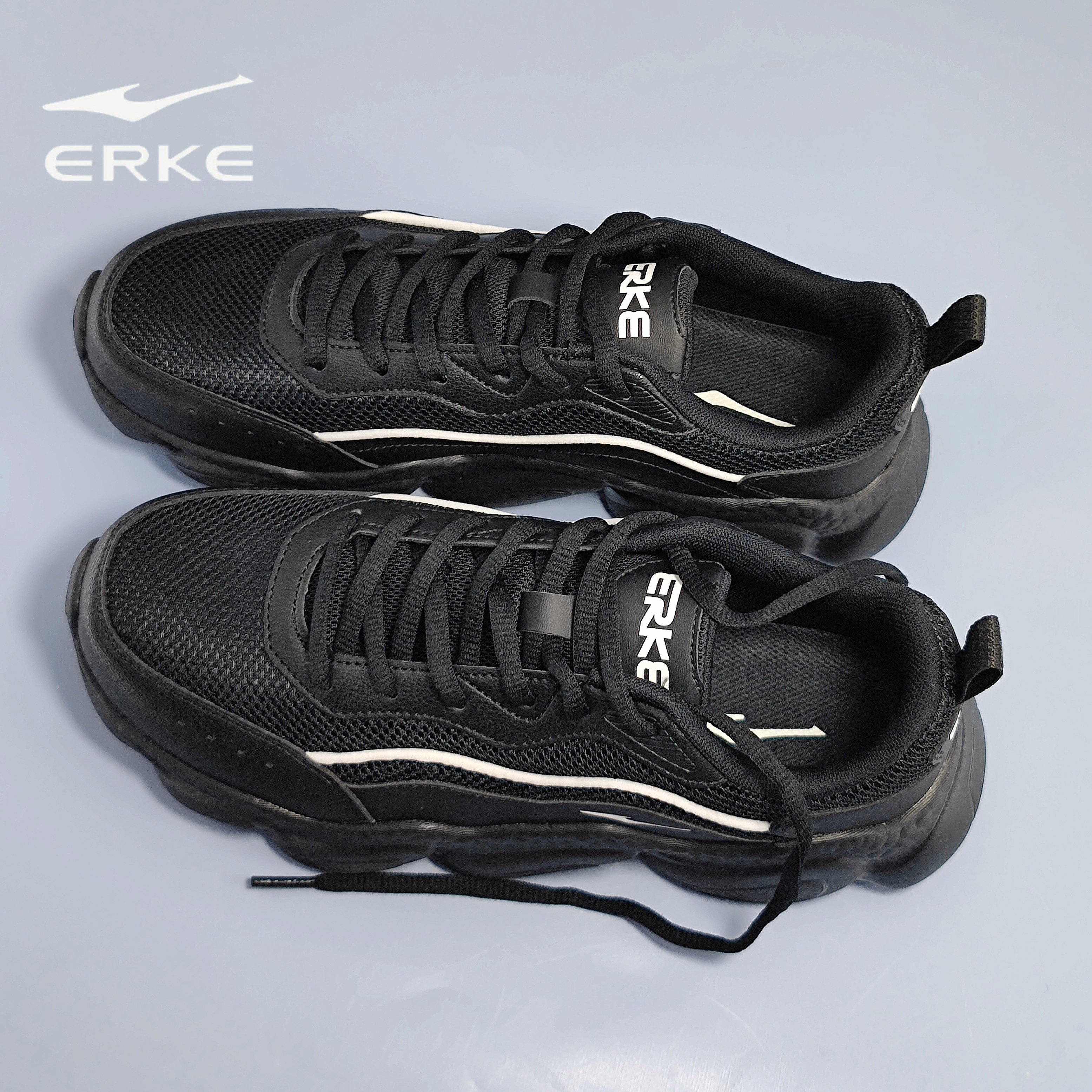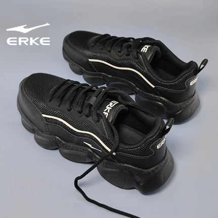 鸿星尔克男鞋软底新款网面透气运动鞋男子厚底减震黑色休闲老爹鞋