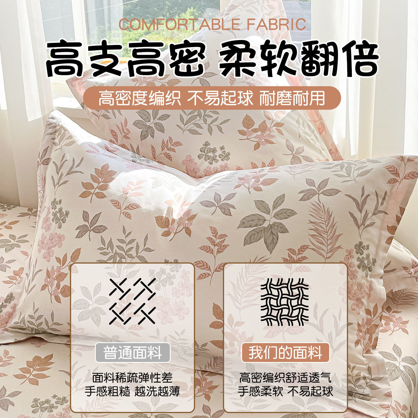 全棉枕头套一对装2026新款纯棉48cmx74cm枕套家用印花枕芯内胆套