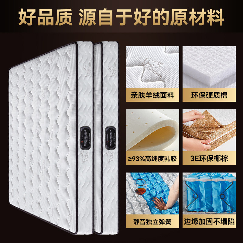 海马飞雪床垫20cm厚席梦思乳胶弹簧床垫软垫家用椰棕硬垫软硬两用