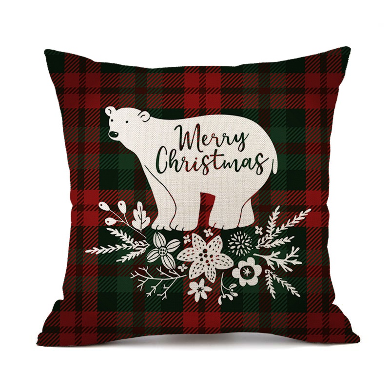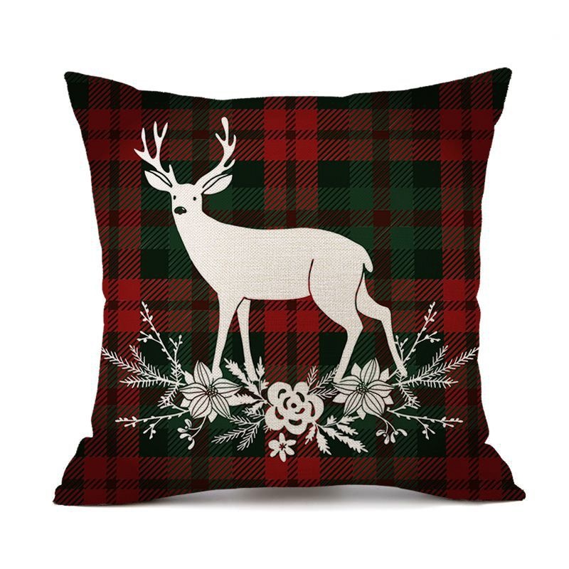 新款圣诞红色格子字母麋鹿亚麻抱枕套汽车沙发靠枕圣诞快乐抱枕