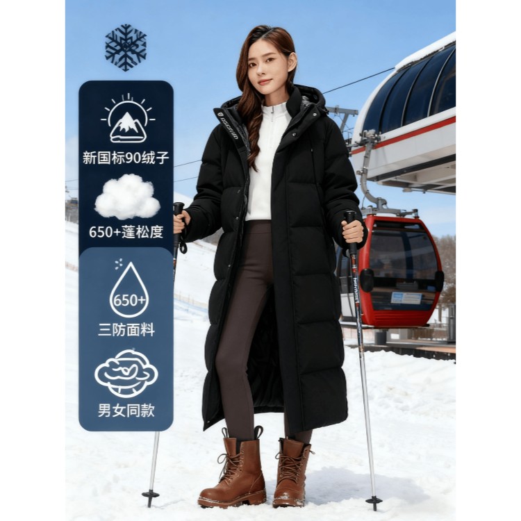 拉夏贝尔羽绒服男女同款中长款秋冬季连帽加厚百搭保暖羽绒外套S
