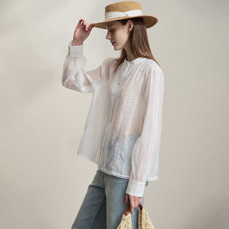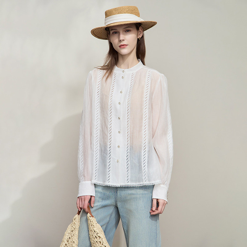 AMII【法式优雅】法式复古宫廷风个性蕾丝镂空长袖衬衫女春秋