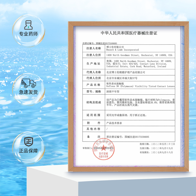 博士伦隐形眼镜半年抛清朗进口半年抛透明片近视眼镜片轻薄透氧