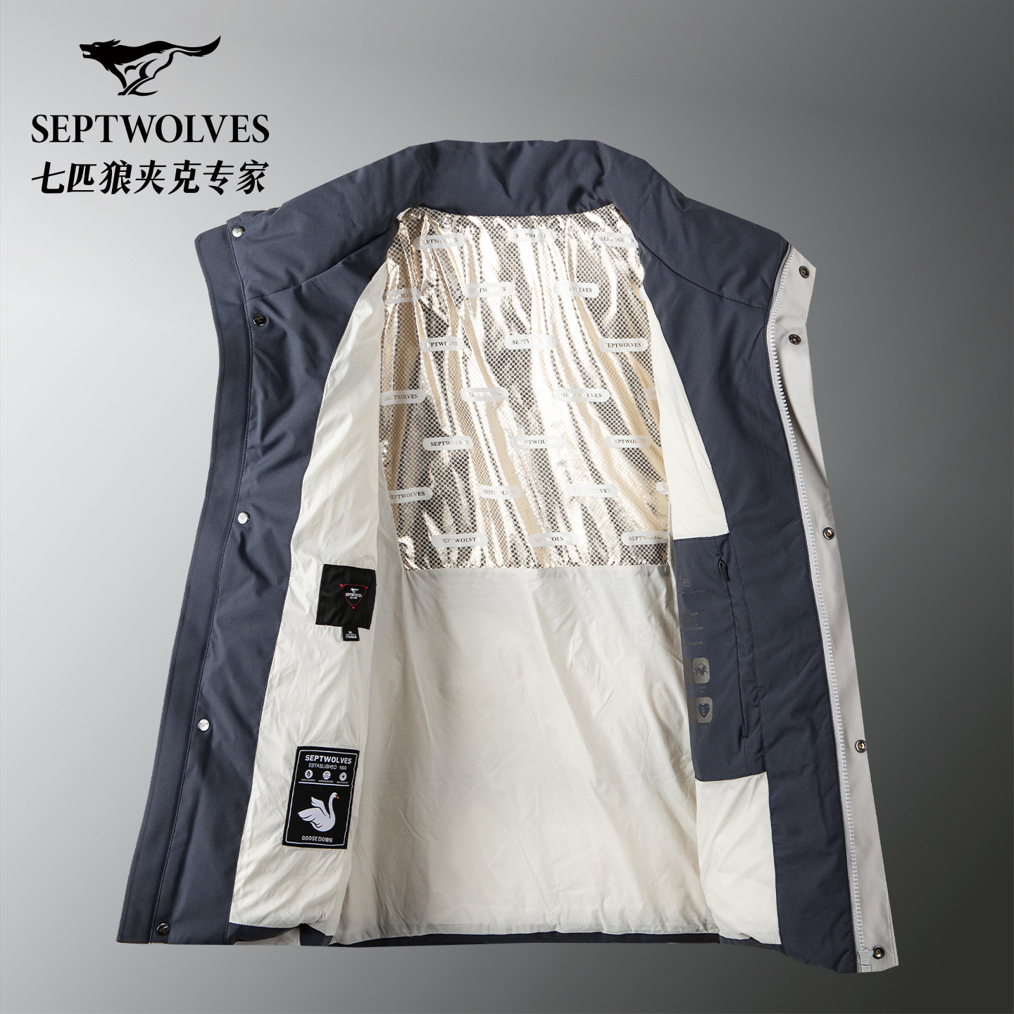 【寒冷厚款】七匹狼男士立领鹅绒羽绒服2025新款冬季加厚面包服男