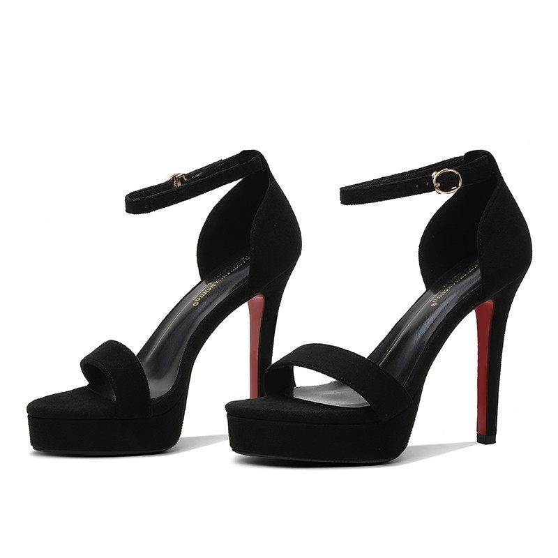超高跟鞋12CM夜店性感防水台绒面时尚一字扣带模特走秀细跟凉鞋女