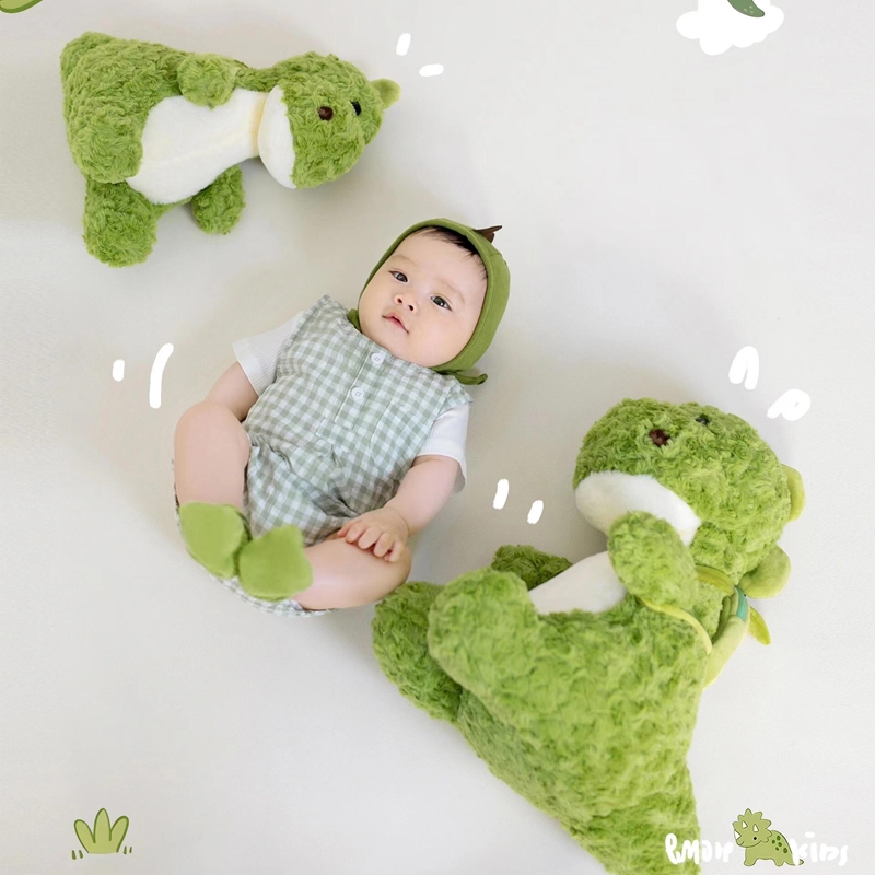 百天周岁儿童摄影服装道具背景绿色恐龙公仔宝宝主题拍照写真套装