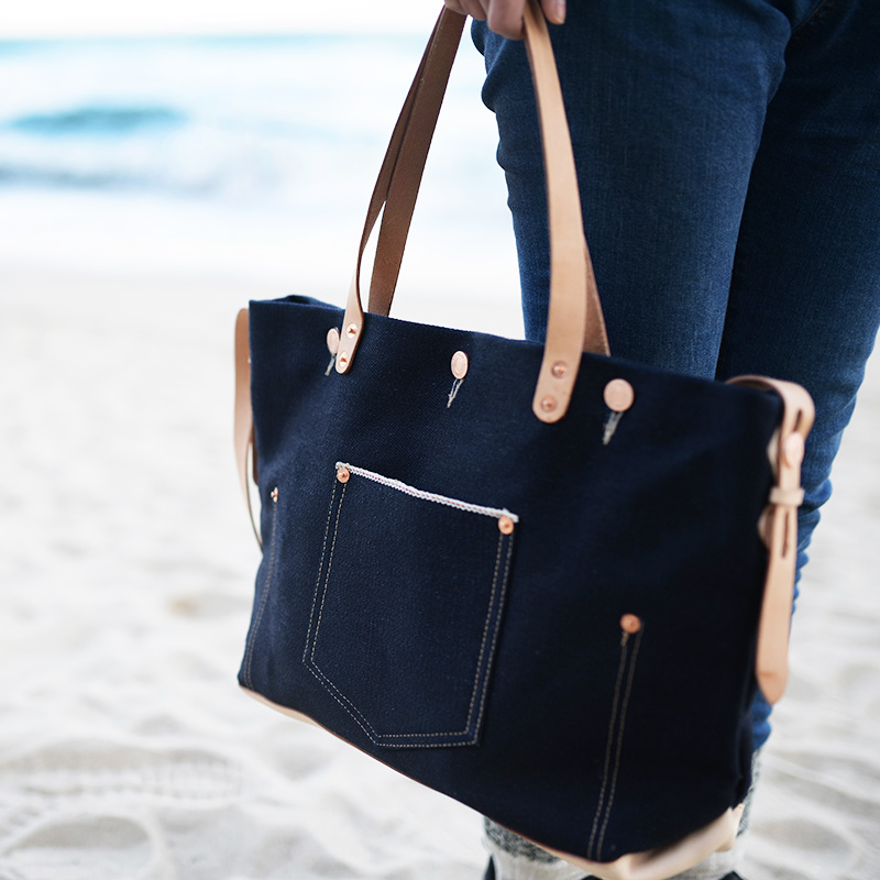 匠线 丹宁日系帆布包 小众设计牛仔单肩斜挎男大容量饺子托特包女