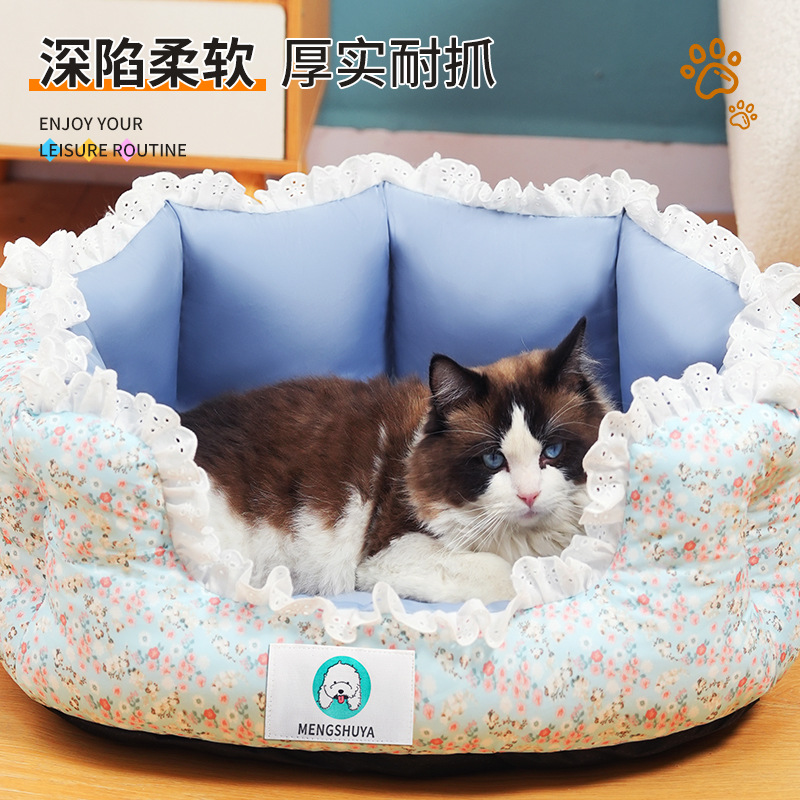 小碎花宠物窝蕾丝花边狗狗睡垫子猫窝四季通用冰丝凉席狗窝