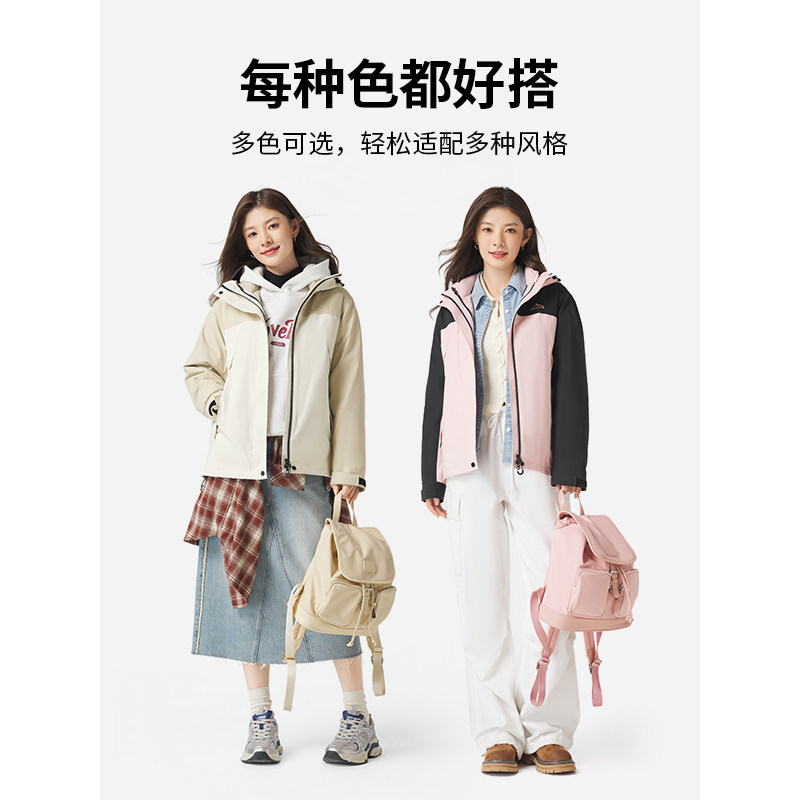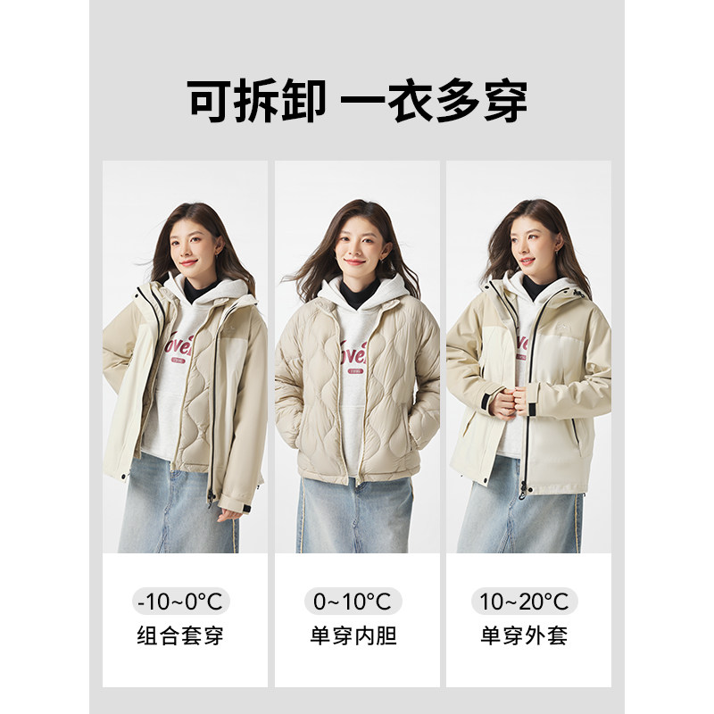 热风羽绒服2024年冬季新款女士户外徒步外套保暖百搭三合一登山服