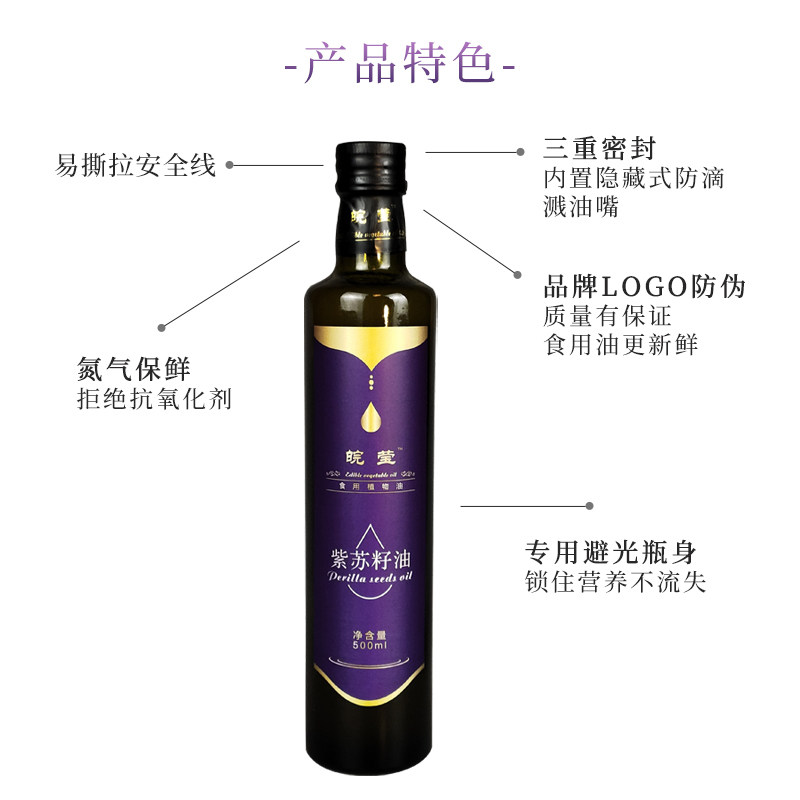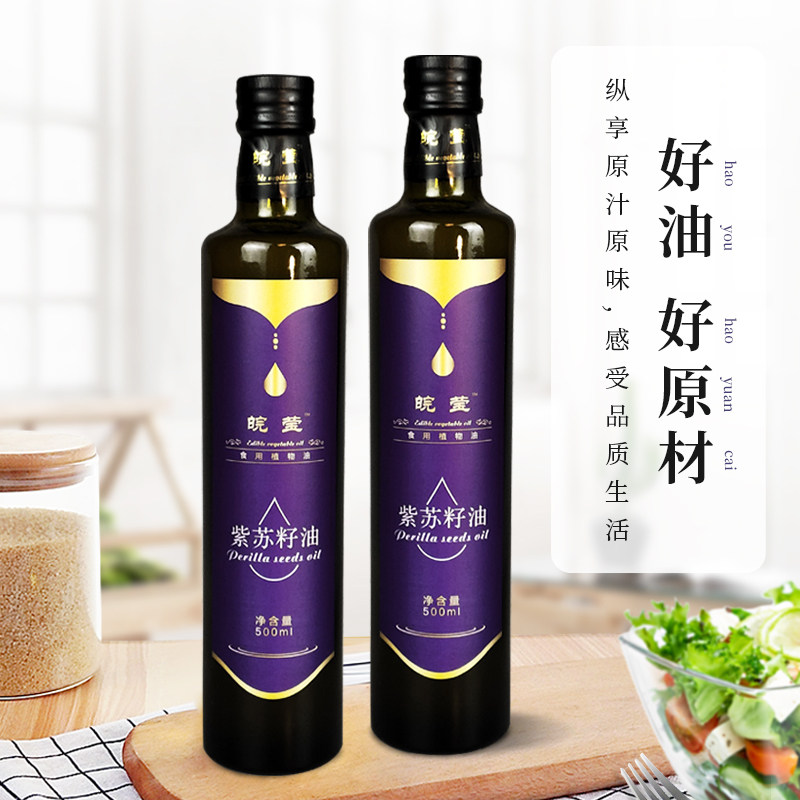 无添加皖莹牌冷榨500ml纯紫苏籽油官方旗舰店苏子油紫苏油
