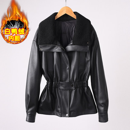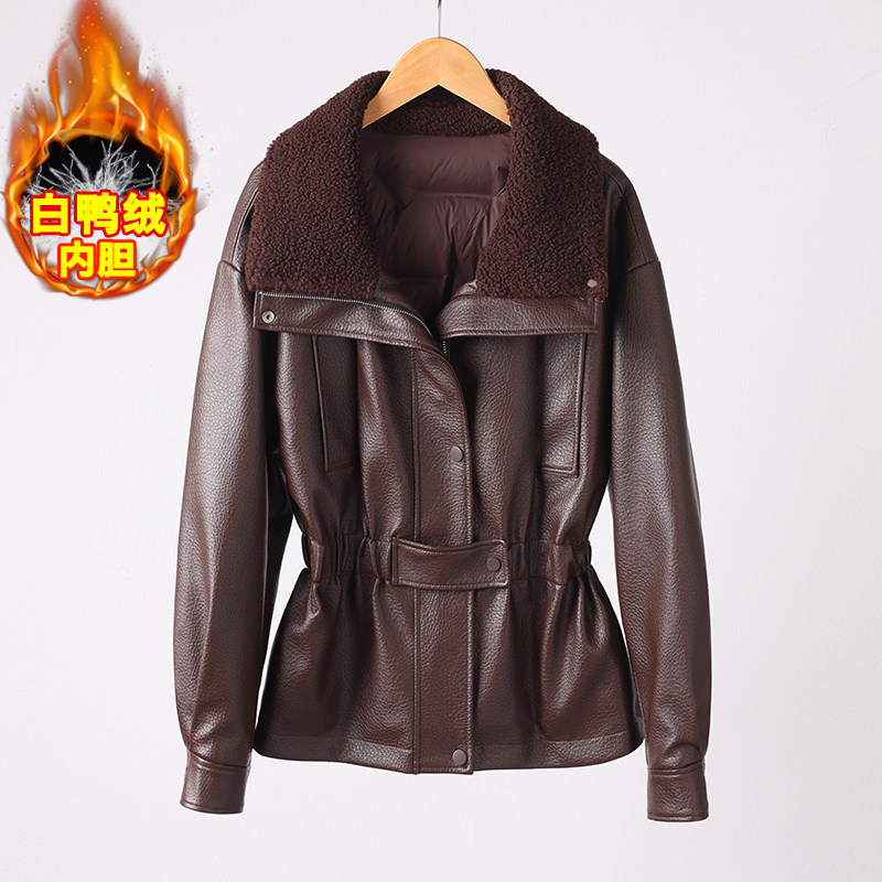 真皮羽绒服皮衣女2025新款绵羊皮拉贡毛领收腰显瘦中长款加厚外套