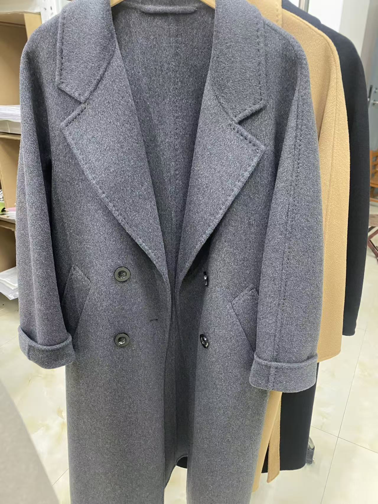 细度15微米!经典款101801六粒扣长款100纯山羊绒双面过膝大衣