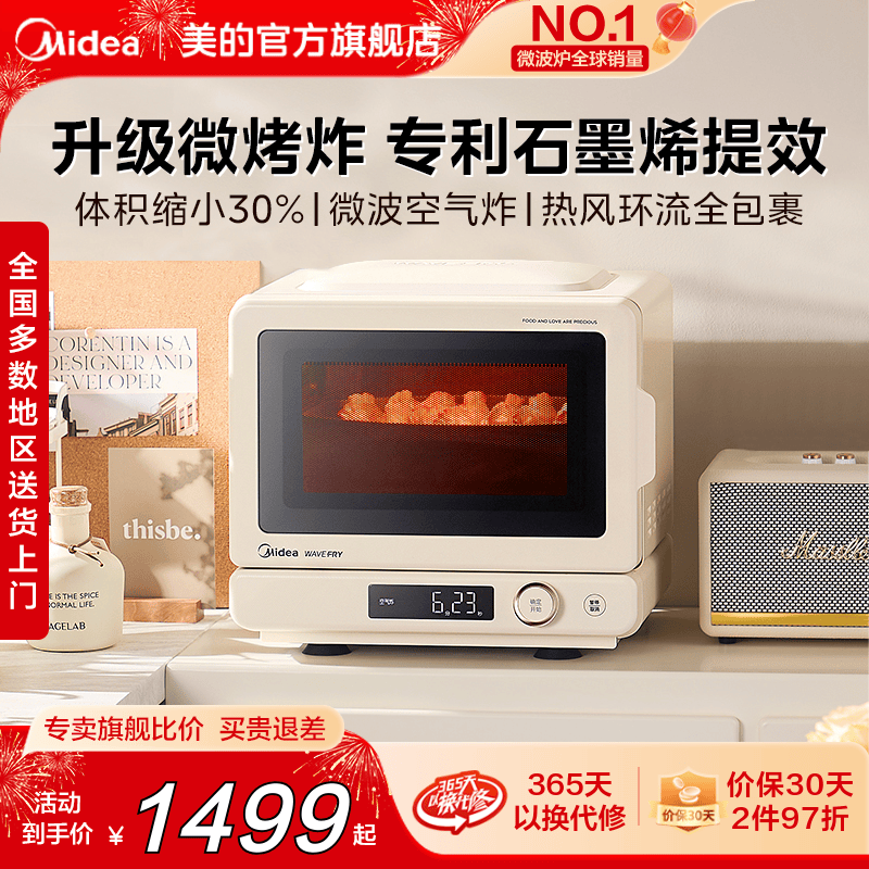 美的小滋味2.0家用微波炉微烤炸三合一体机空气炸锅电烤箱正品C15