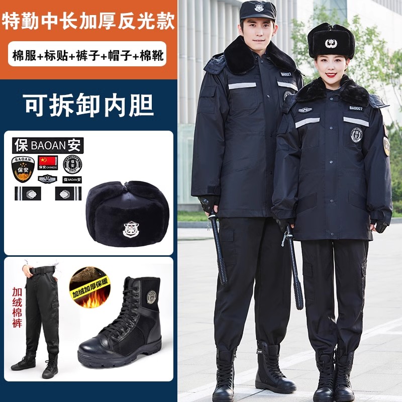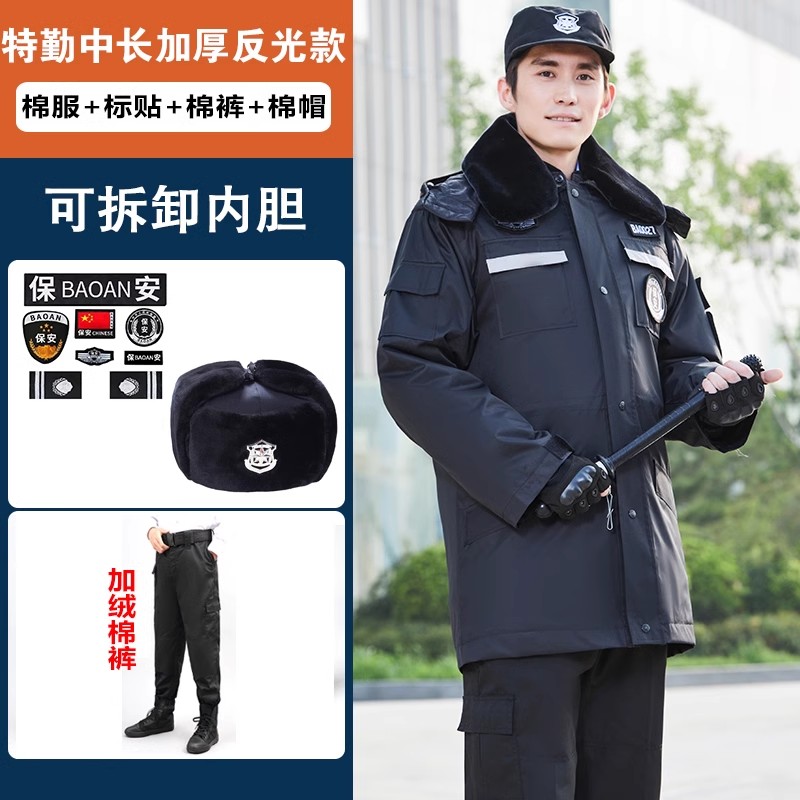 保安大衣男加厚棉服冬季防寒服套装保安中长款冬装制服工作服棉衣