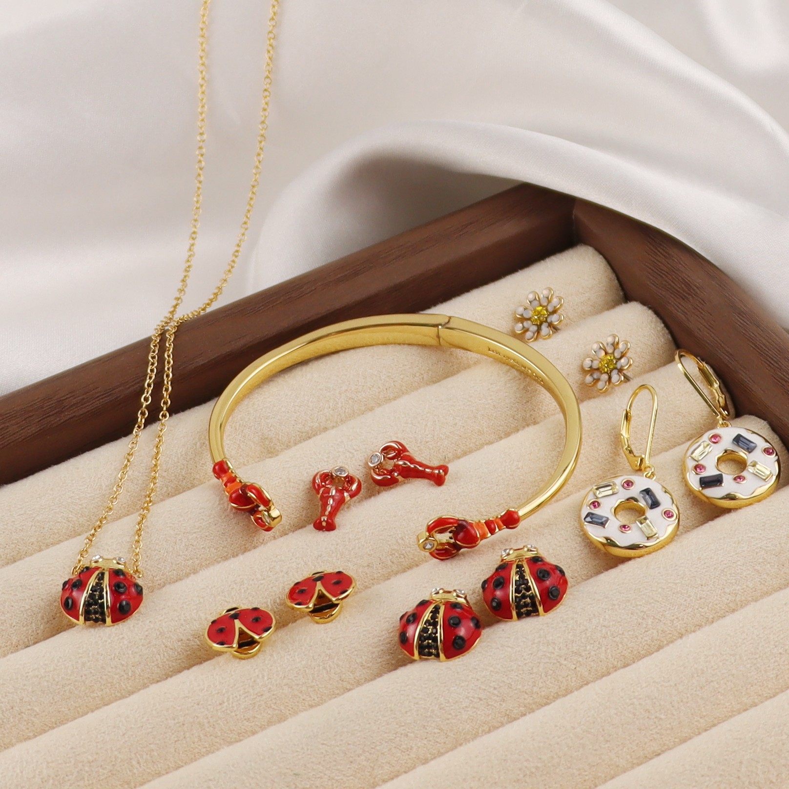 青岛欧美外贸特价孤品手工锆石镶嵌满钻珍珠耳环彩釉耳钉项链女