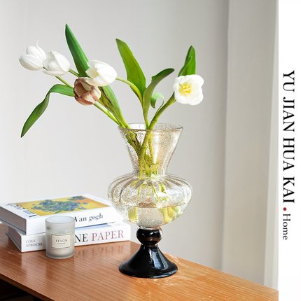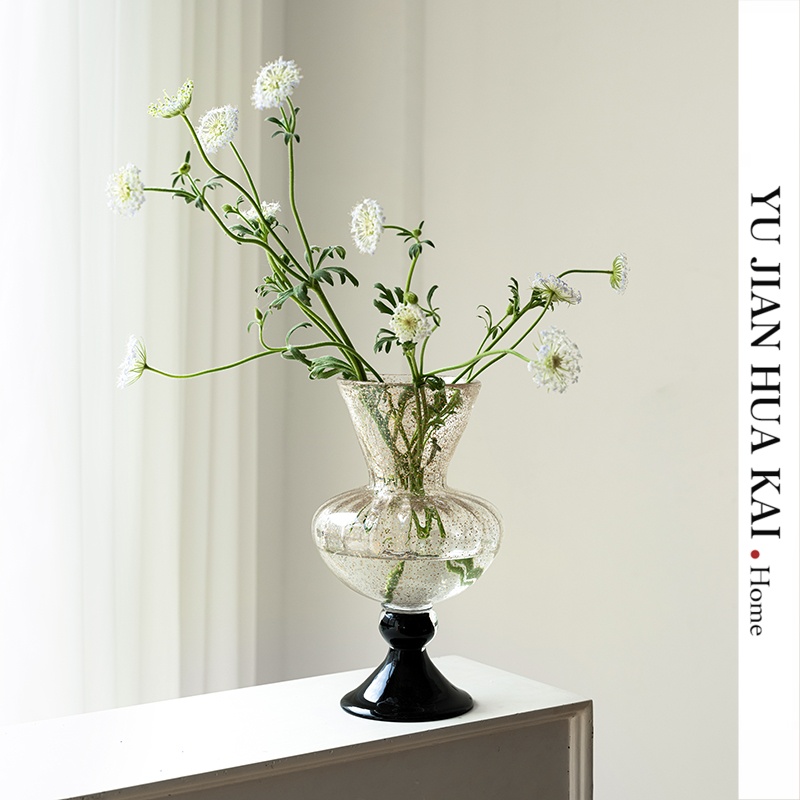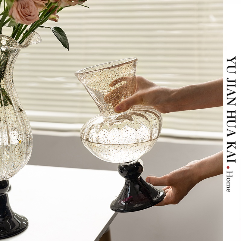 法式中古洒金透明玻璃花瓶摆件客厅插花高级感花器水养鲜花插花瓶