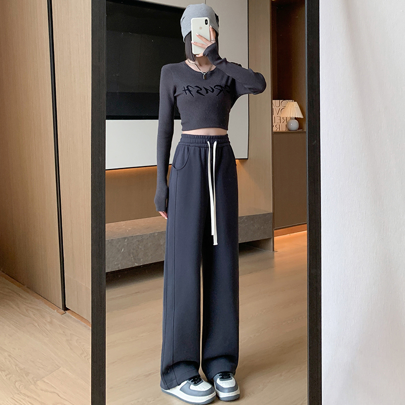 灰色运动裤女春秋2025新款高腰直筒宽松香蕉裤休闲秋冬加绒阔腿裤