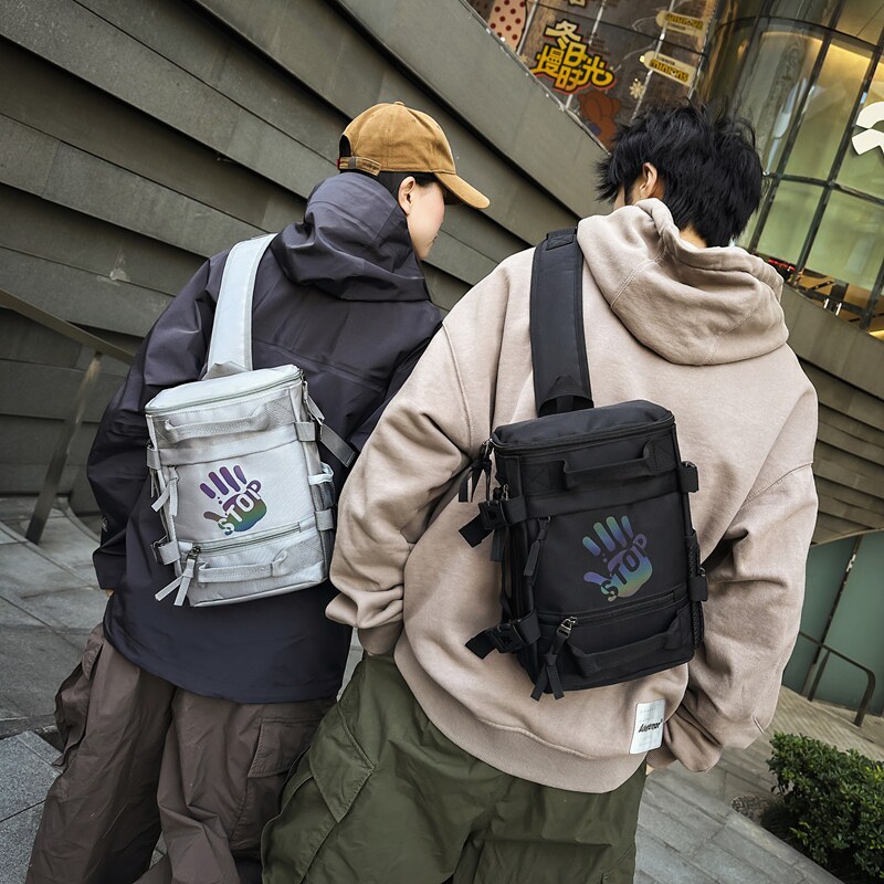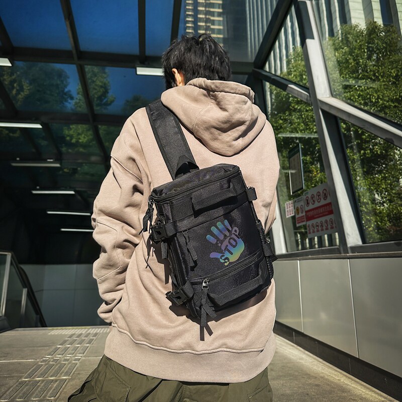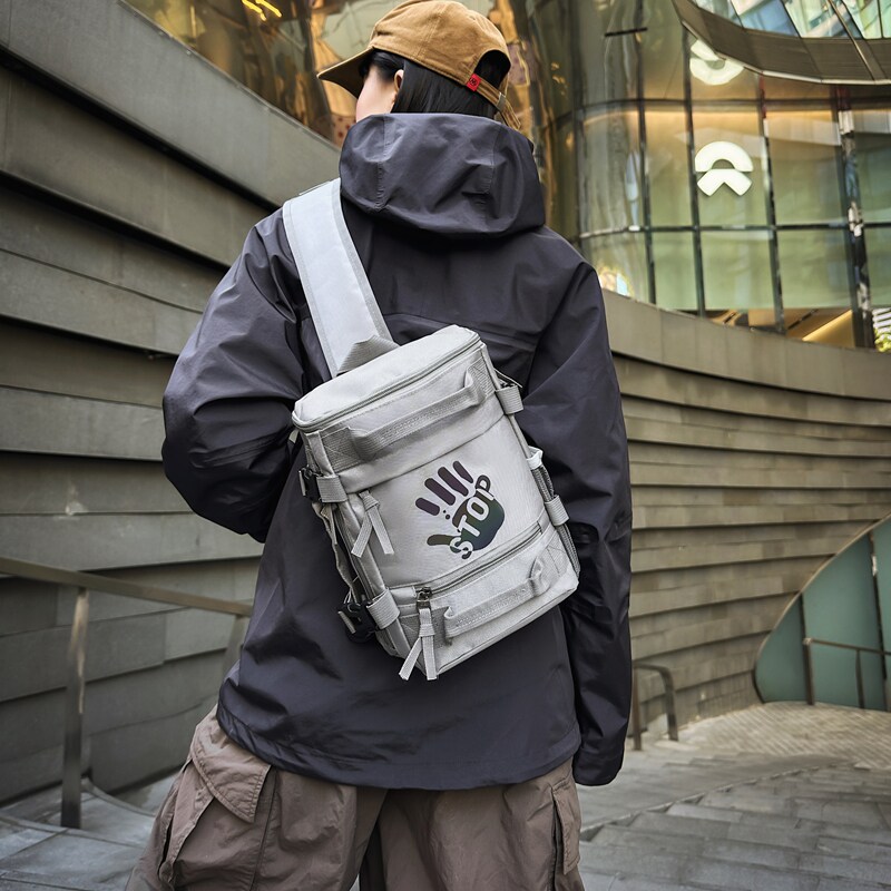 男生斜挎包潮牌日系大容量胸包男款机能工装单肩包小众男士小背包