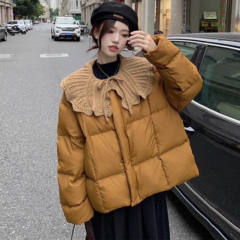 外套大码不显臃胖mm时尚冬季韩版针织娃娃领设计感加厚保暖棉服潮