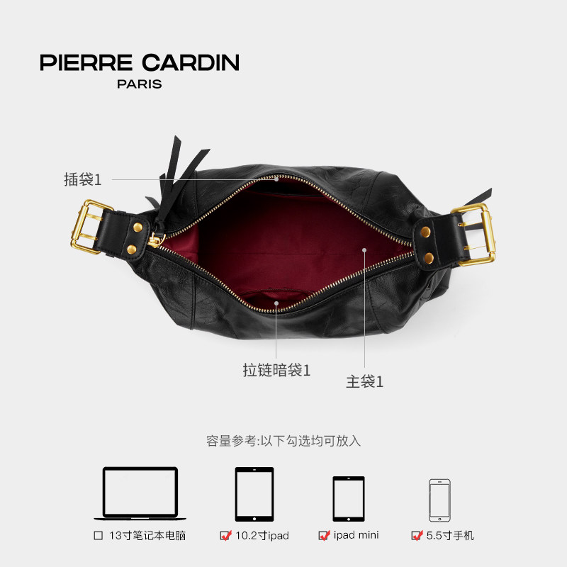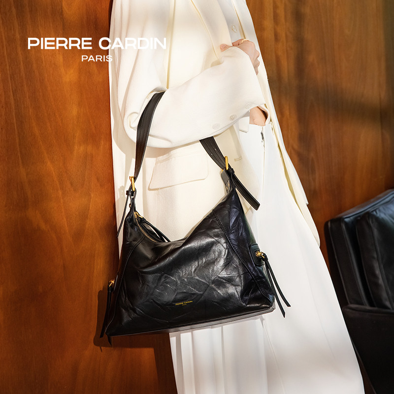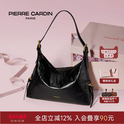【圣诞礼物】皮尔卡丹女包手抓纹机车hobo包腋下包单肩包送礼礼物