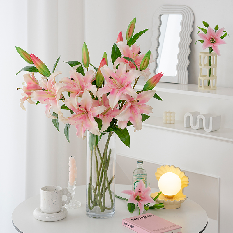 网红手感单枝百合花高级感假花仿真花摆设装饰客厅装饰花摆件插花