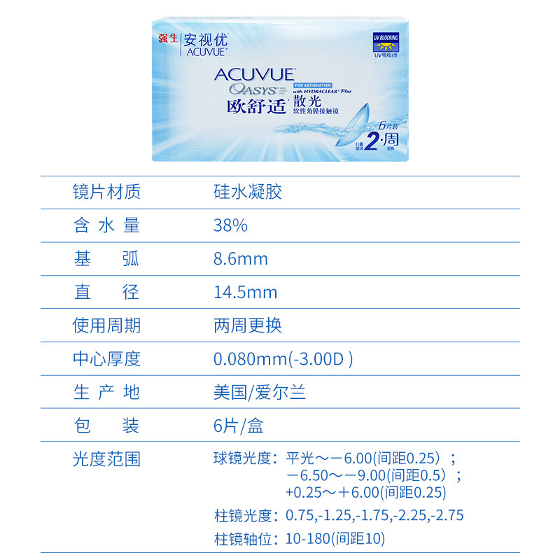 强生散光定制安视优双周抛欧舒适月抛近视隐形眼镜定制硅水凝胶