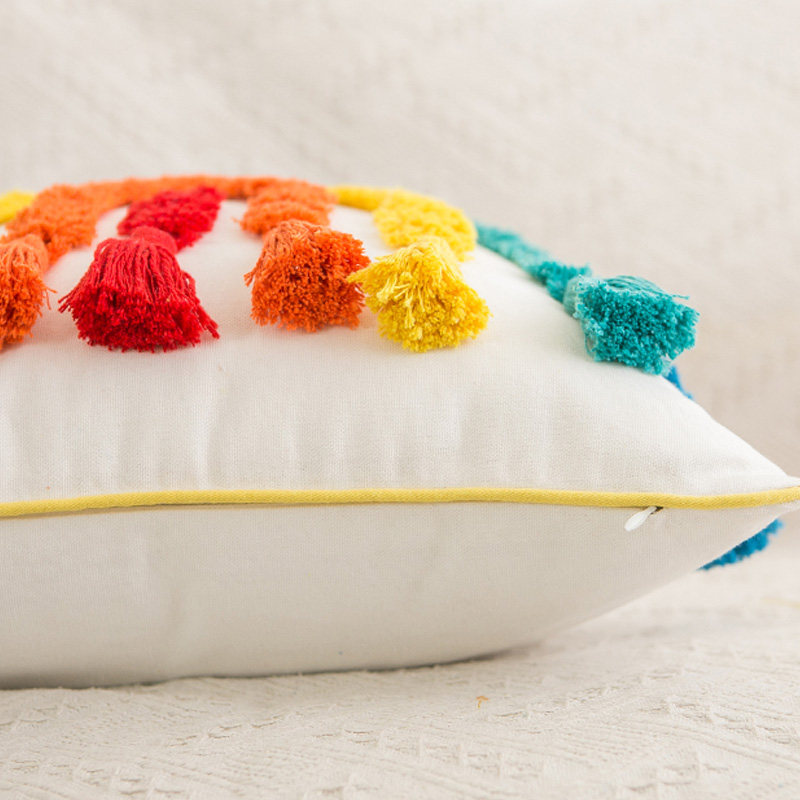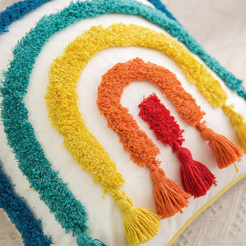 ins风彩虹色系刺绣流苏抱枕民宿家用床上飘窗靠垫客厅沙发靠枕套
