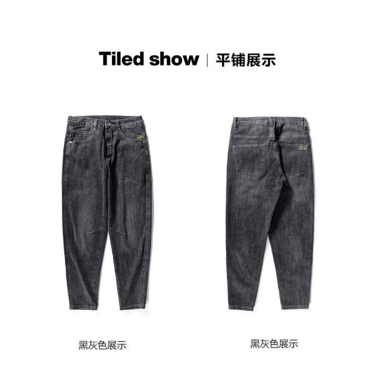 秋冬高端牛仔裤男宽松大码弹力小脚加厚加绒裤休闲复古哈伦长裤潮
