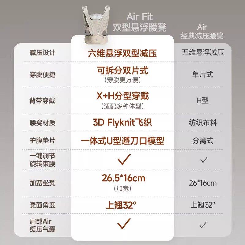 HBR虎贝尔Air Fit 悬浮腰凳婴儿背带二合一宝宝轻便四季抱娃神器