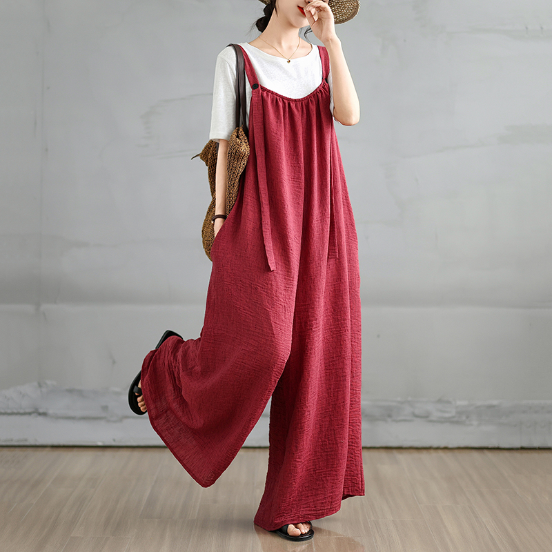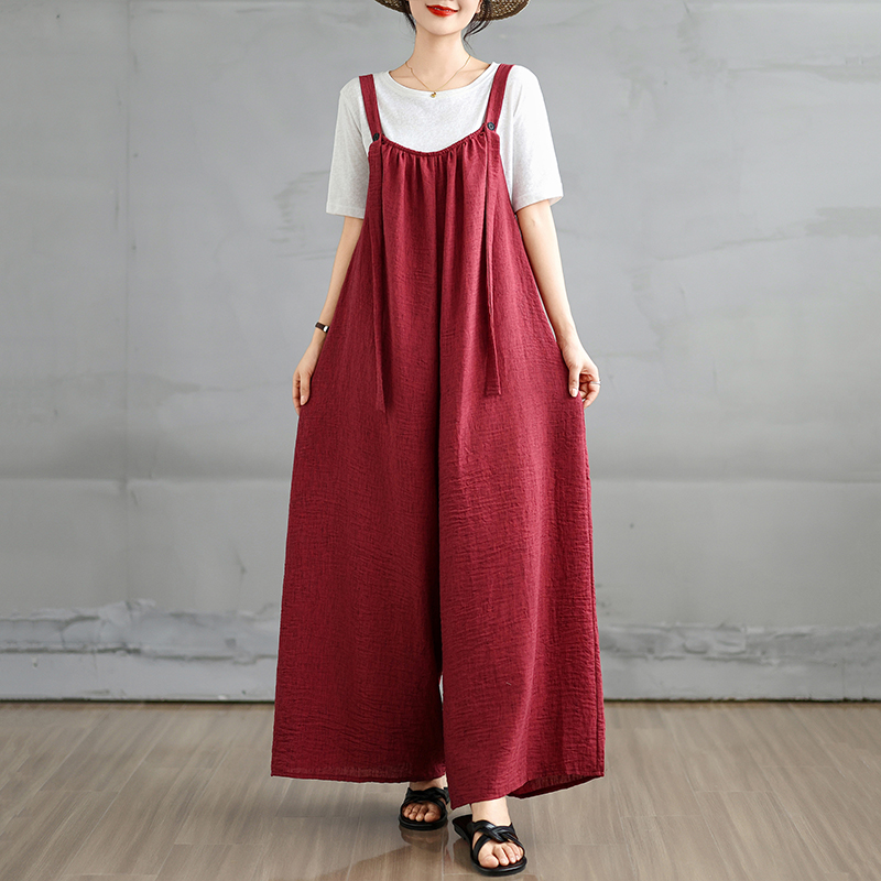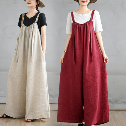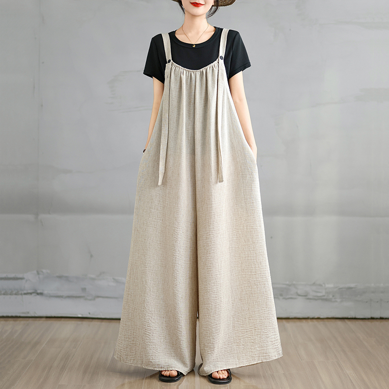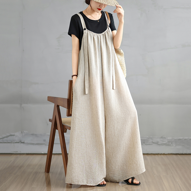 休闲慵懒风o 落日余晖背带裤女春夏复古宽松阔腿连体裤子纯色垂感