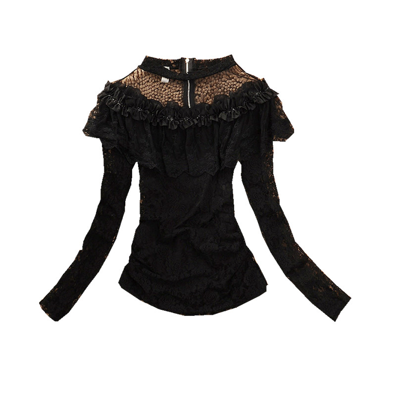 2024秋冬新款女装锁骨心机一字领上衣显瘦网纱雪纺衫蕾丝打底衫潮