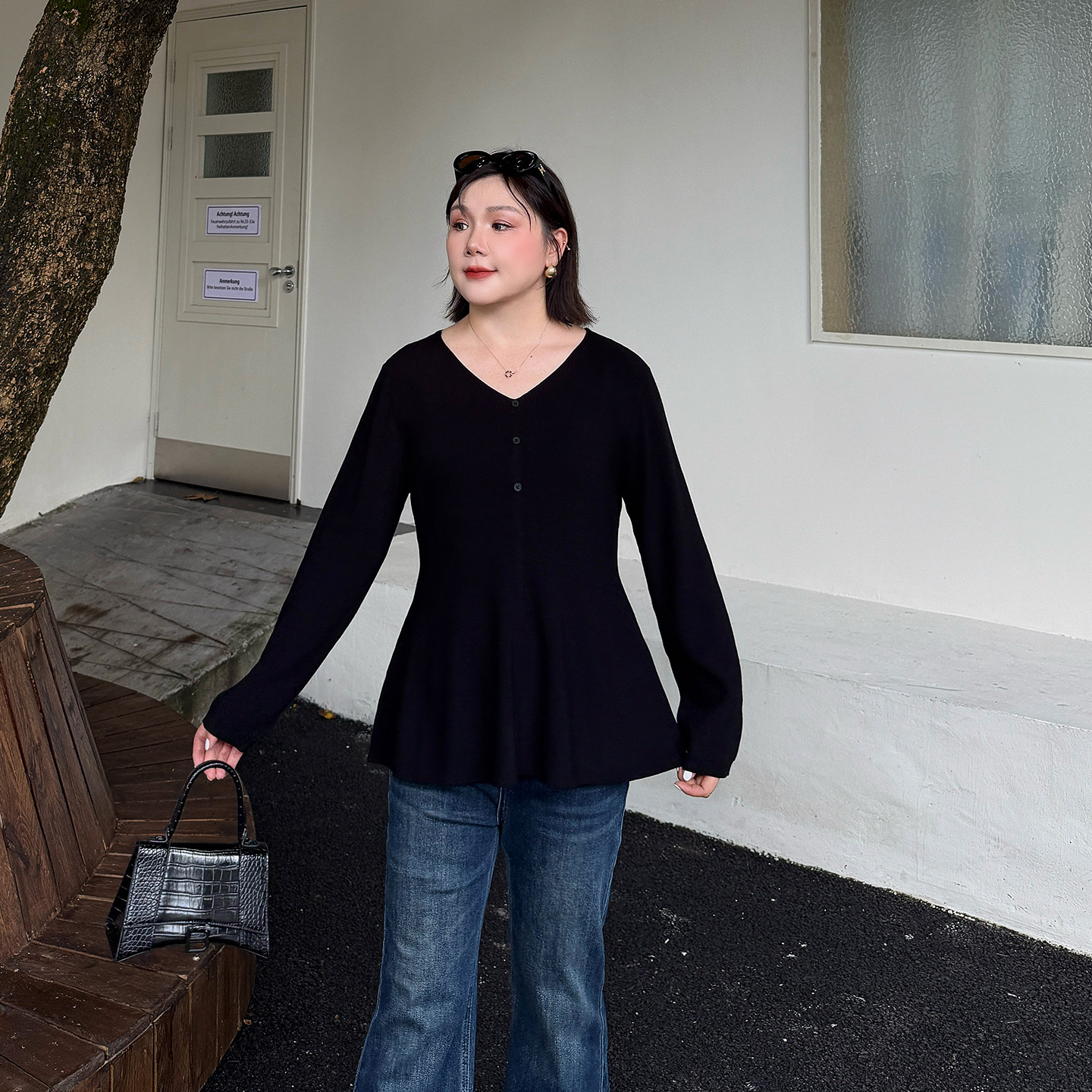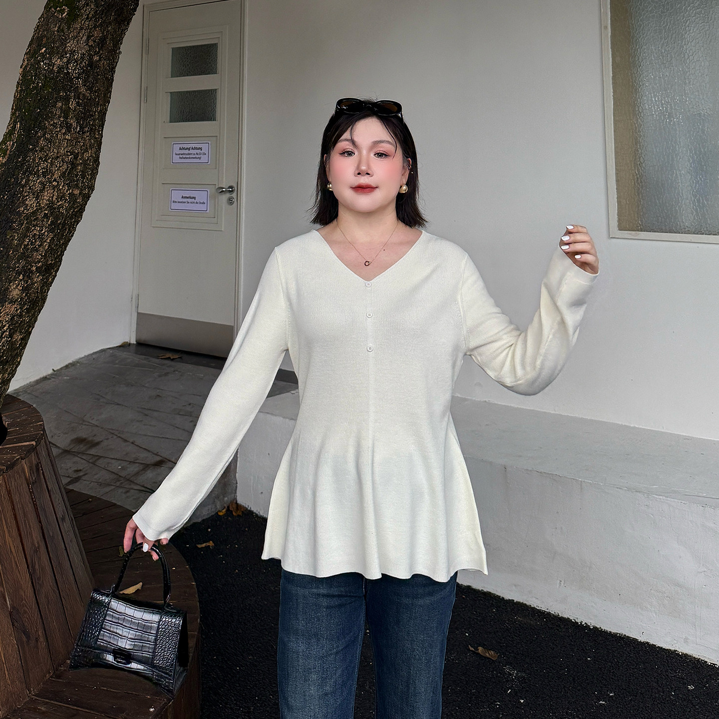 心存真大码女装显瘦A字针织衫2025秋新款胖mm修身显瘦百搭打底衫