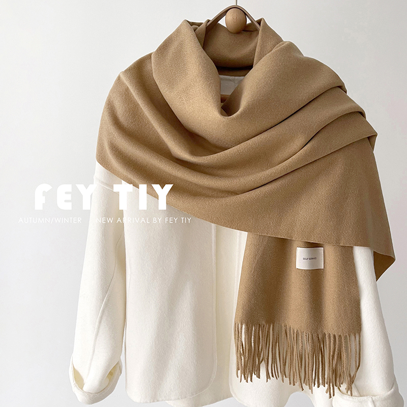 2025新款定制纯色围巾女 秋冬季网红保暖仿羊绒披肩韩版驼色围脖