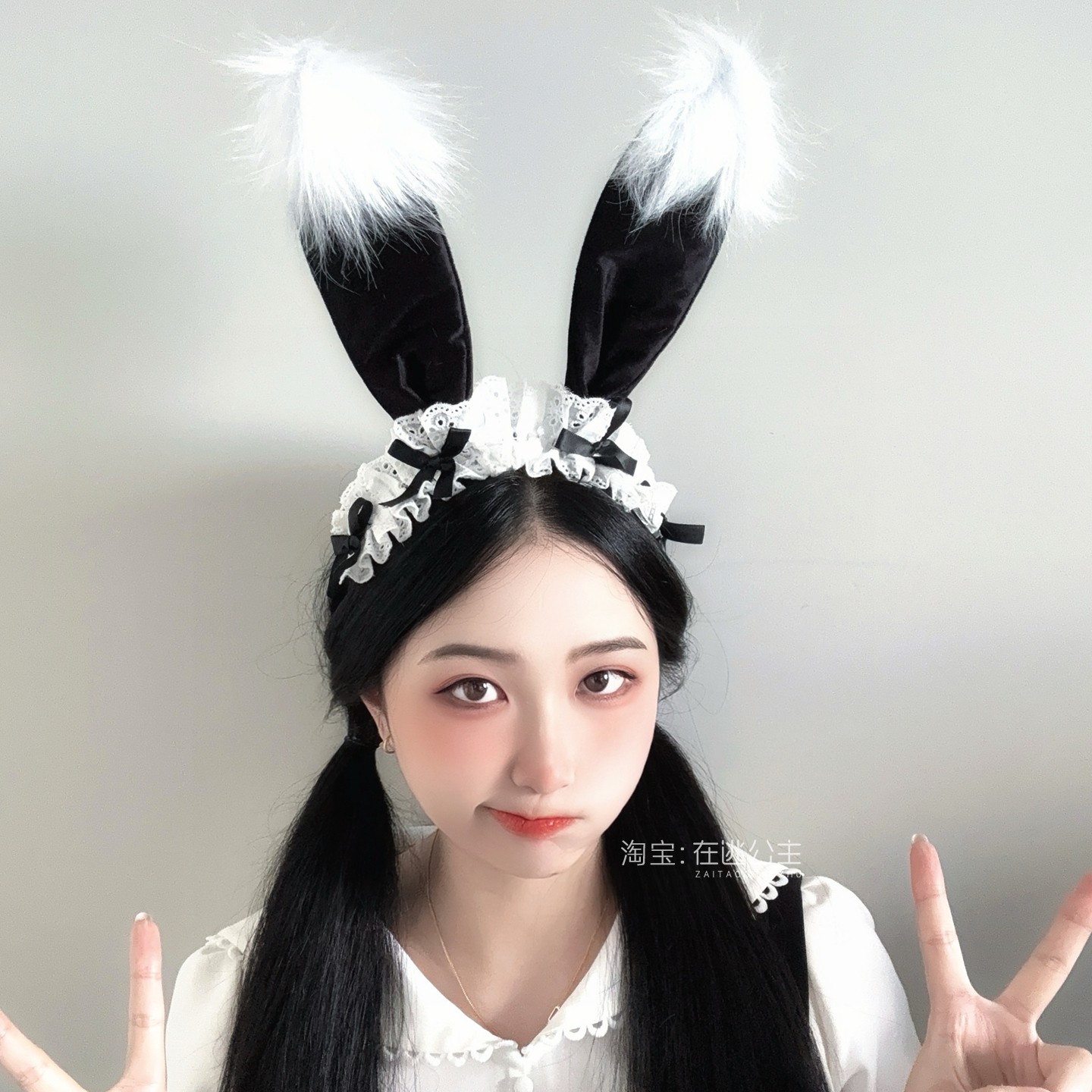 可爱兔耳朵发箍毛绒卡通头箍蕾丝蝴蝶结洛丽塔头饰少女兔子发卡