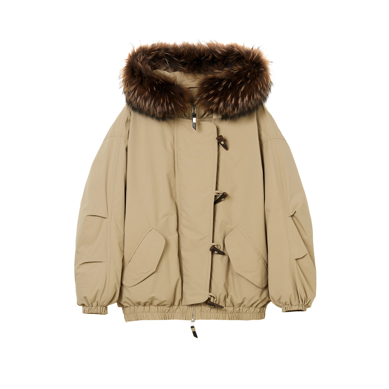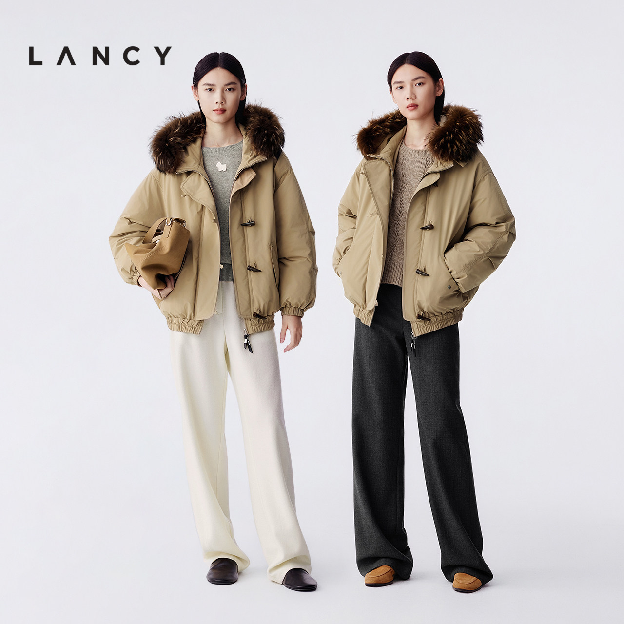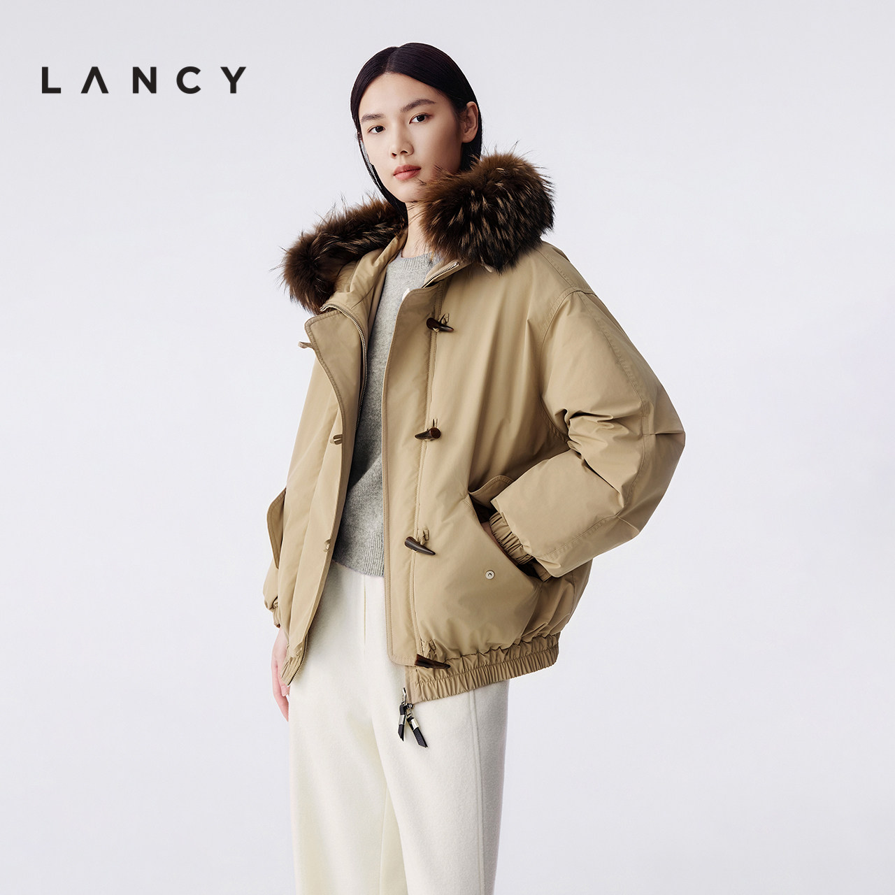 【匈牙利白鹅绒】LANCY/朗姿2025冬季新款大毛领短款派克羽绒服厚