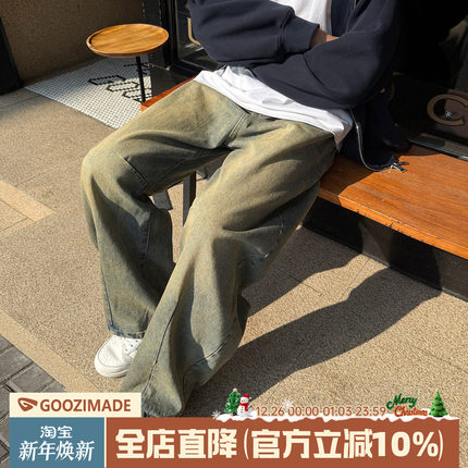 GOOZI MADE clenfit直筒牛仔裤男冬季美式青少年百搭休闲工装裤子