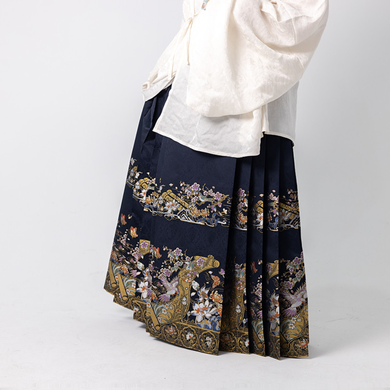南山集【画卷】明制高经密织锦缎仿妆花浅色白色马面裙平价日常