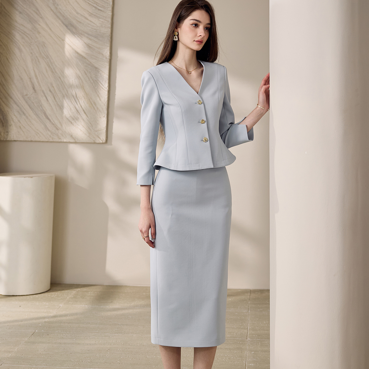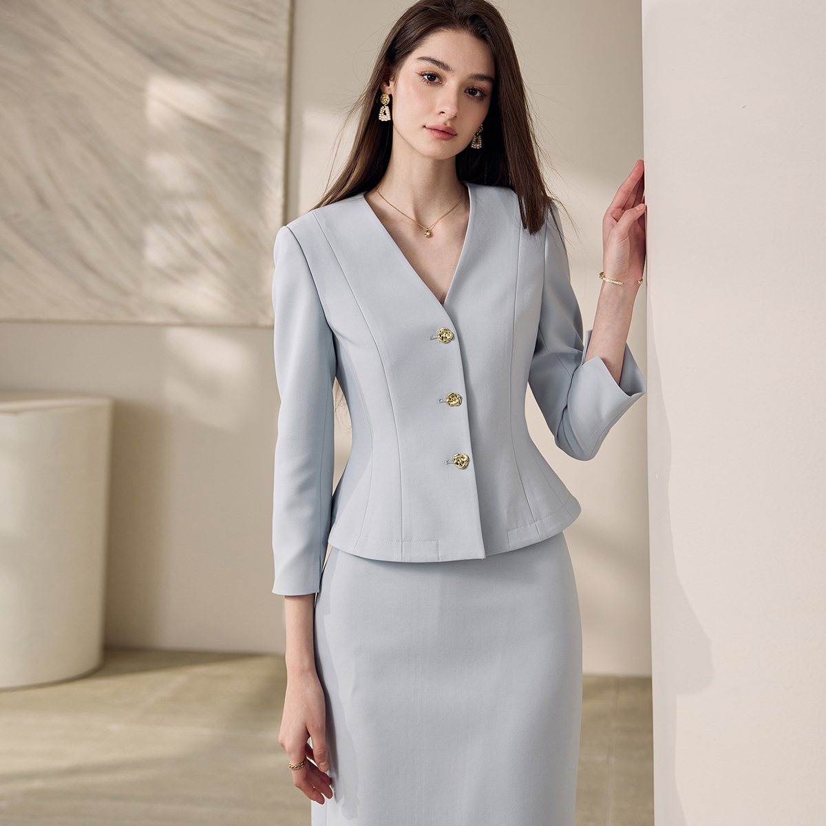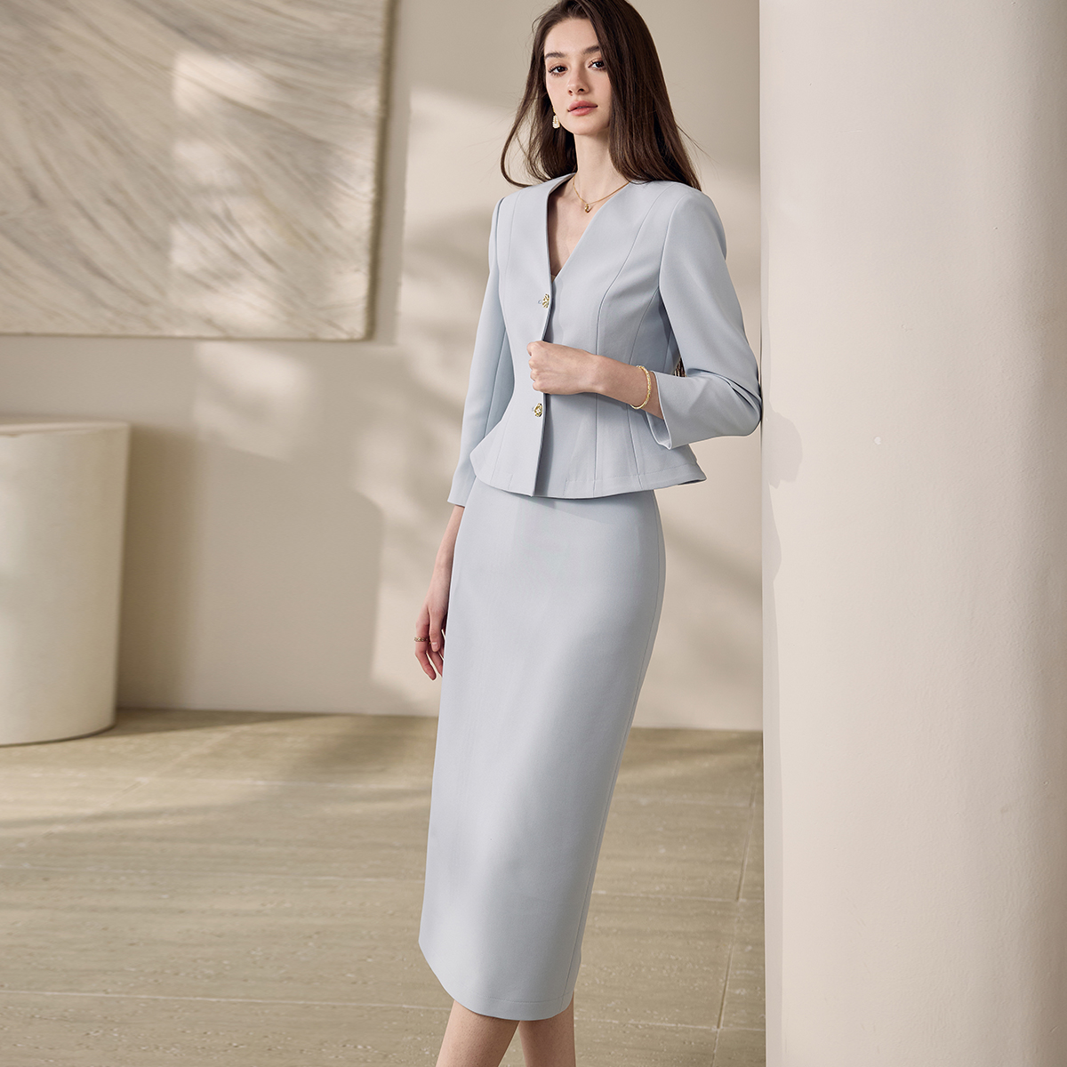 罗衣高级通勤职业套装女秋正式场合短外套+半身裙两件套套裙11846