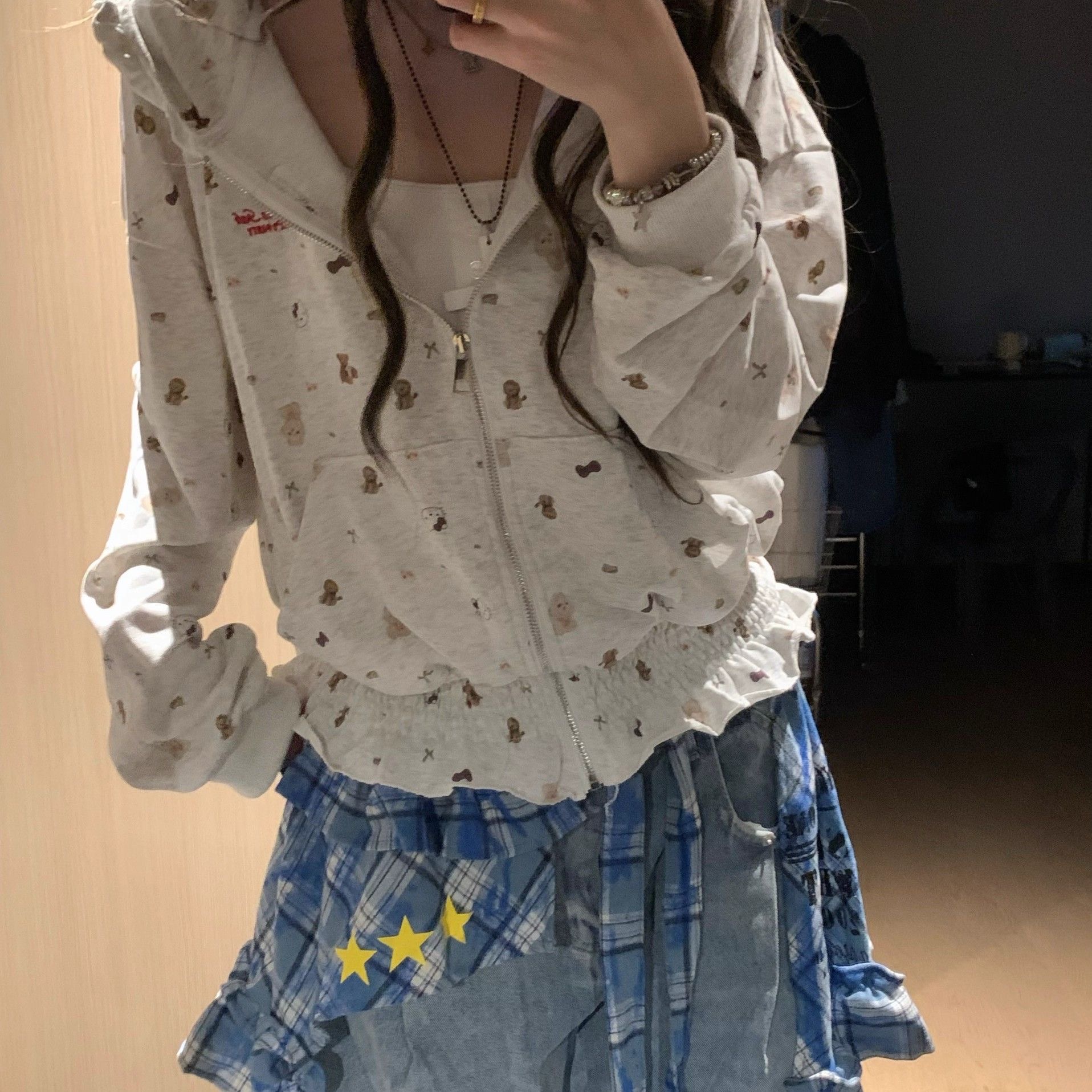 早秋薄卫衣女巨好看美式复古碎花连帽宽松休闲百搭开衫外套上衣潮