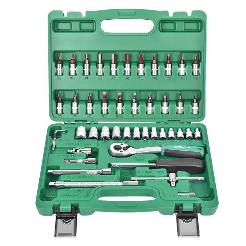 53件套筒组套工具1/4小飞汽修工具套装批头套筒棘轮扳手组合工具