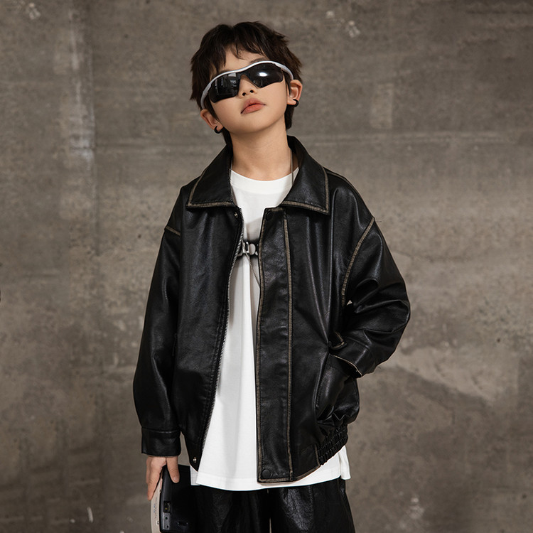 高级感男童春秋皮衣外套上衣夹克帅气10-12岁15洋气男生多巴胺穿