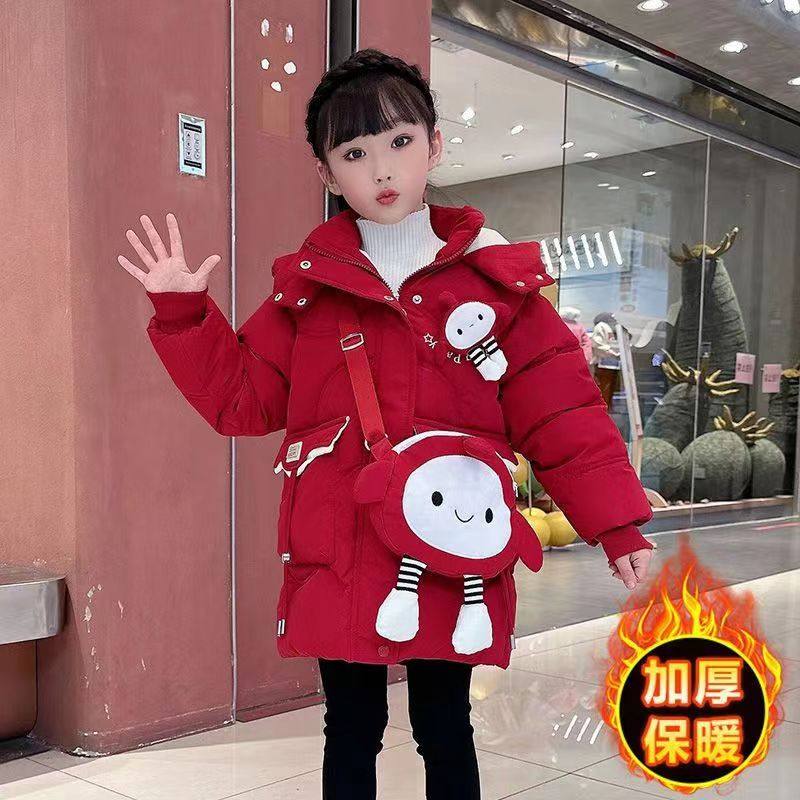 女童冬装棉衣2025新款加绒加厚卡通蛋仔棉袄洋气中长款棉服外套